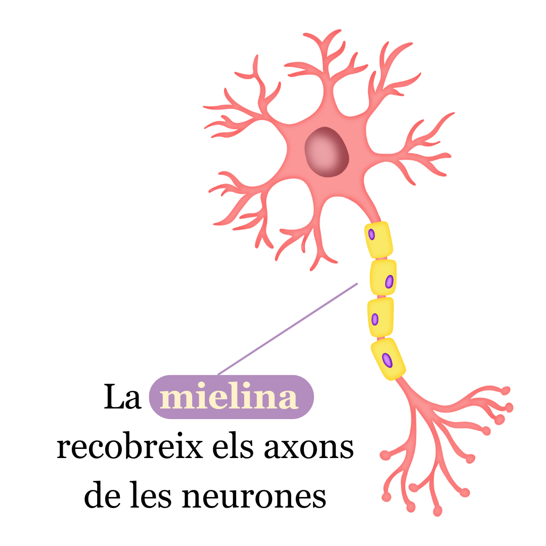 A l’esclerosi múltiple, la mielina es veu danyada i es dificulta la transmissió de senyals entre neurones. Això pot provocar problemes de mobilitat, equilibri i coordinació.