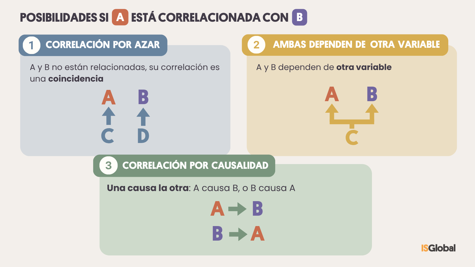 Dos variables (A y B) pueden estar correlacionadas: