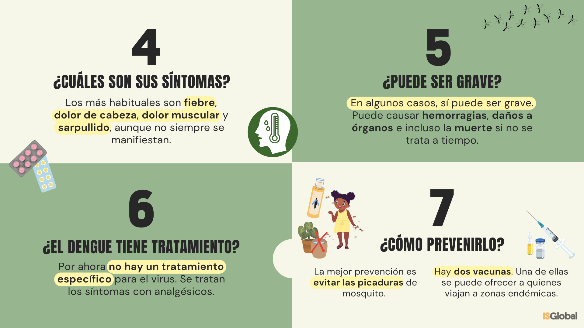 No hay tratamiento específico para el dengue, pero ya hay dos vacunas autorizadas. Una de ellas (de Sanofi) solo se recomienda para personas que viven en zonas endémicas y ya han tenido una infección previa. La otra (de Takeda) puede usarse para toda persona mayor de cuatro años, sin importar si tuvo o no una infección previa. Hay varias otras vacunas prometedoras en desarrollo.